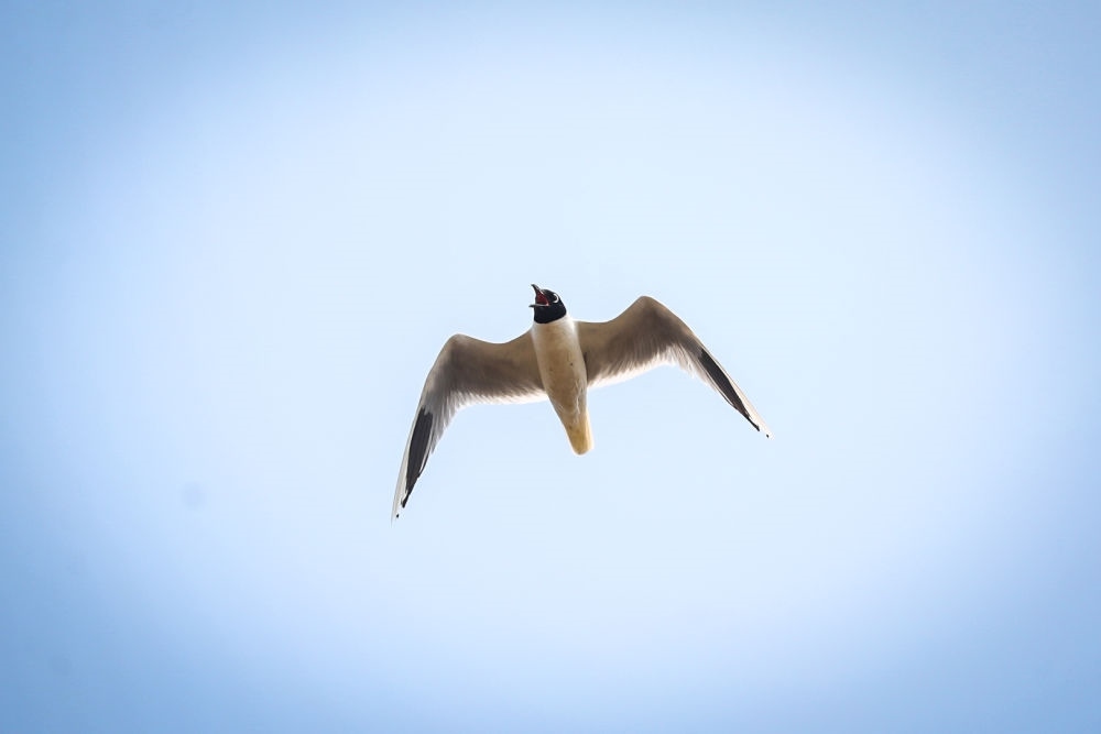 在盤(pán)錦市遼河口國(guó)家級(jí)自然保護(hù)區(qū)南小河保護(hù)站附近的濕地,黑嘴鷗在天空中飛翔(2022年6月17日攝)。新華社記者 潘昱龍 攝