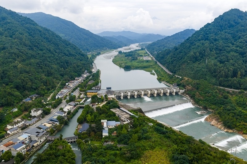 9月10日拍攝的四川彭州湔江堰(無人機(jī)照片)。