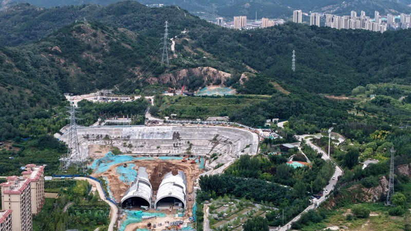 這是9月22日在青島市李滄區(qū)拍攝的建設(shè)中的唐山路隧道。