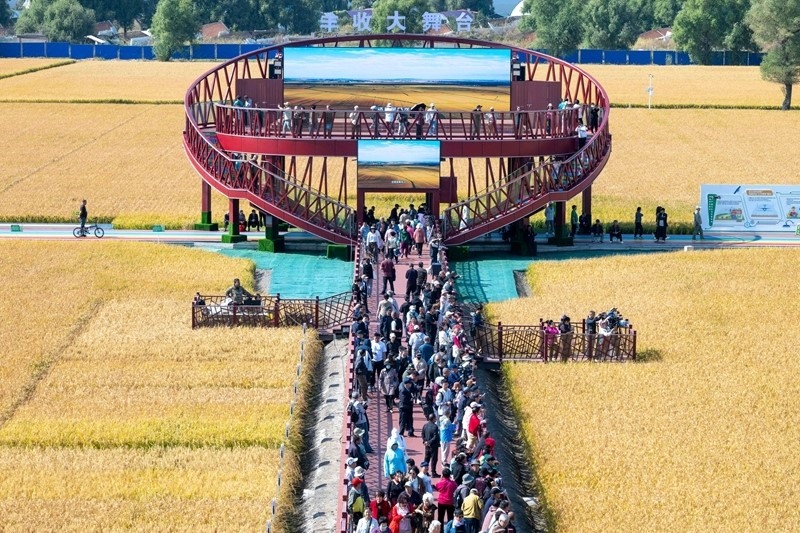 9月23日,2025年中國農(nóng)民豐收節(jié)黑龍江省主場(chǎng)活動(dòng)在北大荒農(nóng)墾集團(tuán)閆家崗農(nóng)場(chǎng)稻田藝術(shù)公園拉開帷幕,人們歡聚一堂,共享一場(chǎng)同耕耘、共歡歌的豐收盛宴。