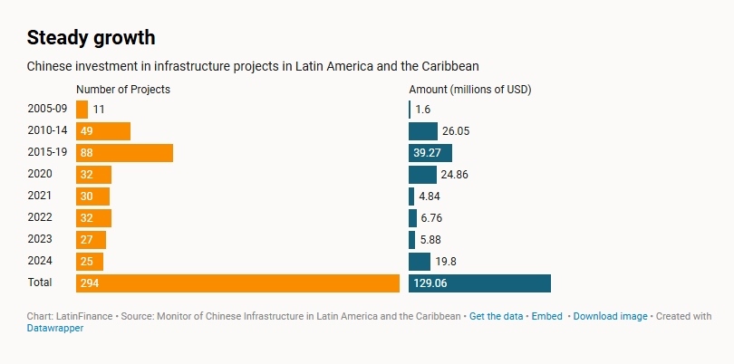 中國在拉丁美洲和加勒比地區(qū)投資基礎設施項目(來源:《拉美金融》)