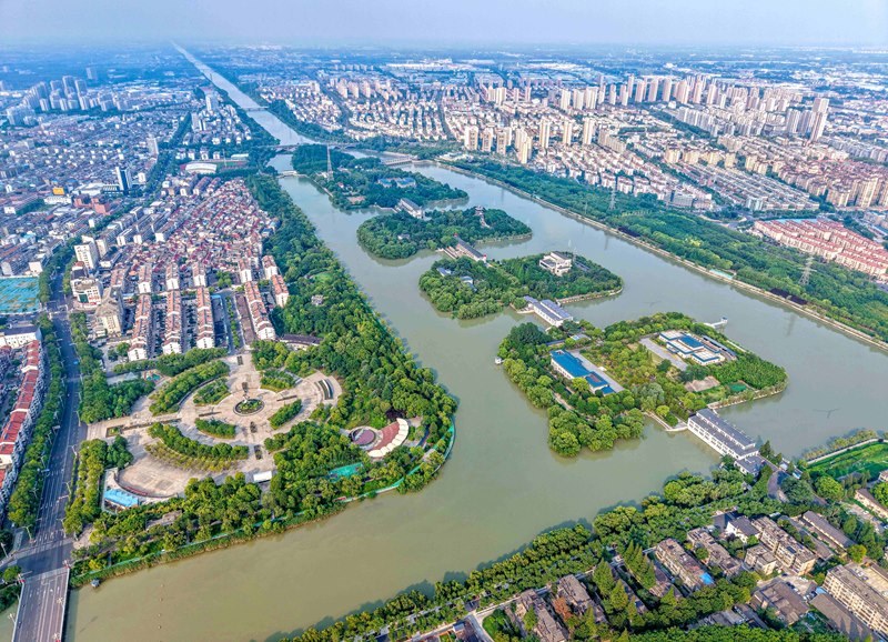 這是位于江蘇省揚州市江都區(qū)的南水北調東線一期工程運鹽閘、邵仙套閘、邵仙閘洞(7月6日攝,無人機照片)。
