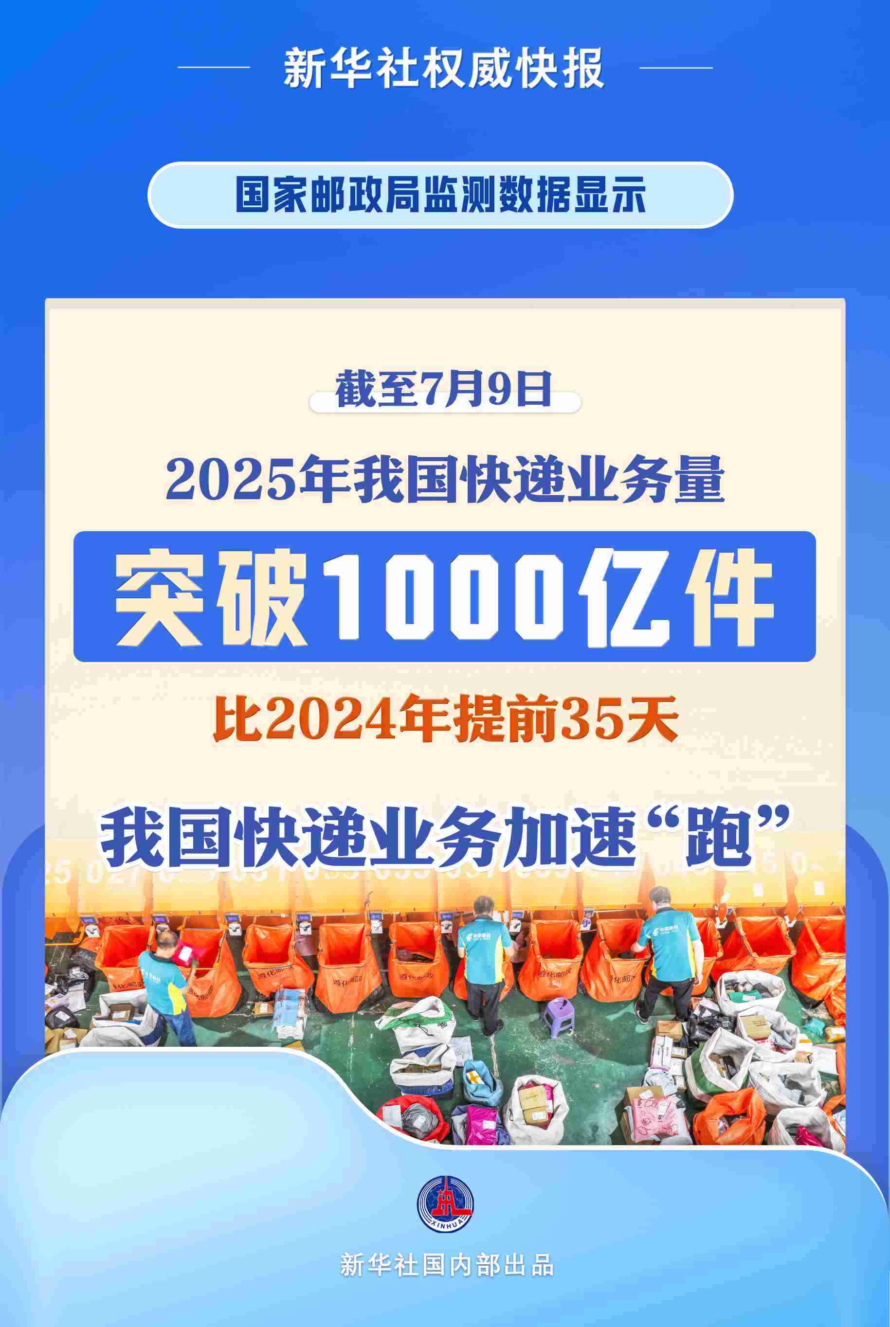 新華社北京7月10日電(記者葉昊鳴)記者10日從國家郵政局了解到,根據國家郵政局監(jiān)測數據顯示,截至7月9日,2025年我國快遞業(yè)務量突破1000億件,比2024年達到千億件提前35天。