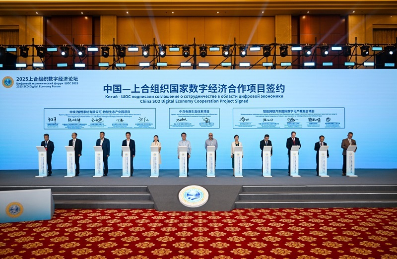7月11日在論壇現(xiàn)場拍攝的中國—上合組織國家數(shù)字經(jīng)濟(jì)合作項(xiàng)目簽約儀式。