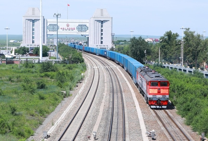 7月24日,一列滿載貨物的回程中歐班列通過國門駛入中國鐵路哈爾濱局集團有限公司滿洲里站。