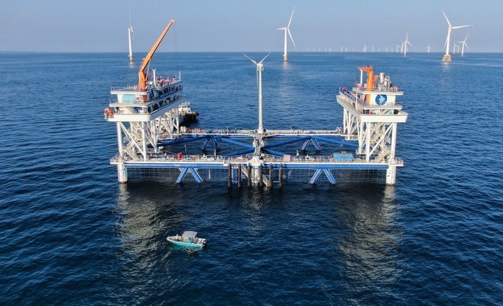 在廣東汕頭南澳島的蔚藍海域上,116臺海上風機扇葉輕轉間,源源不斷的綠色電能流向南粵大地。截至今年上半年,汕頭已建成3個海上風電場,總裝機容量約120萬千瓦。