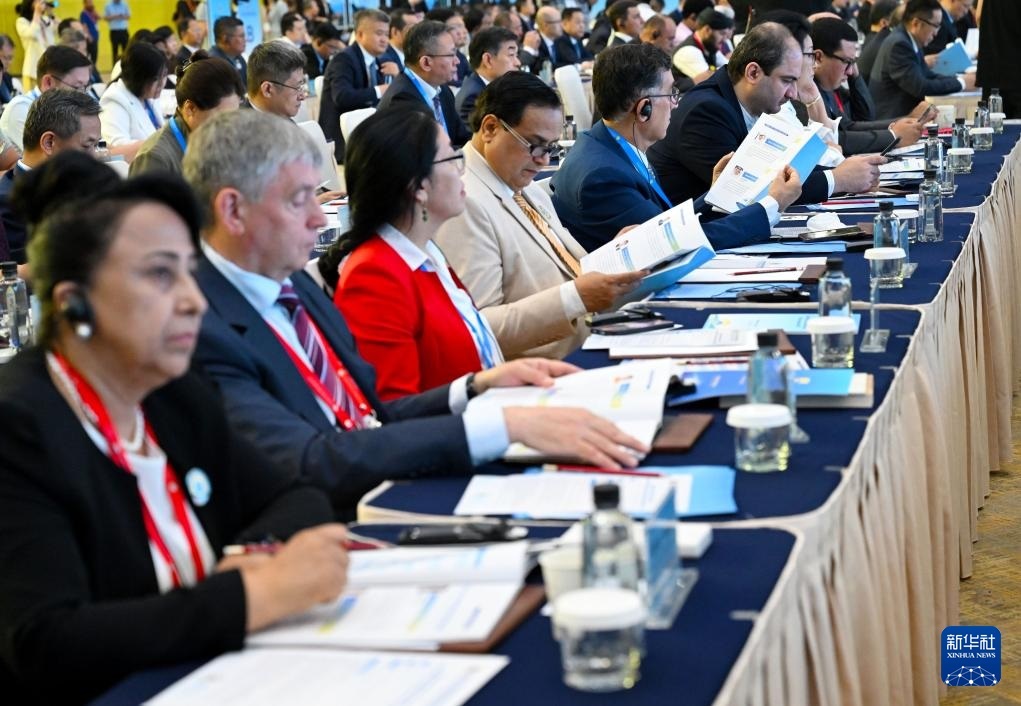 這是7月25日拍攝的上海合作組織媒體智庫(kù)峰會(huì)全體會(huì)議現(xiàn)場(chǎng)。新華社記者 高潔 攝