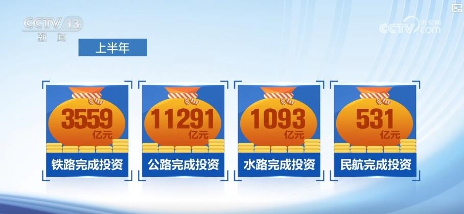 交通運輸部數(shù)據(jù)顯示,上半年,我國完成交通固定資產(chǎn)投資16474億元,其中,鐵路、公路、水路、民航分別完成投資3559億元、11291億元、1093億元和531億元。