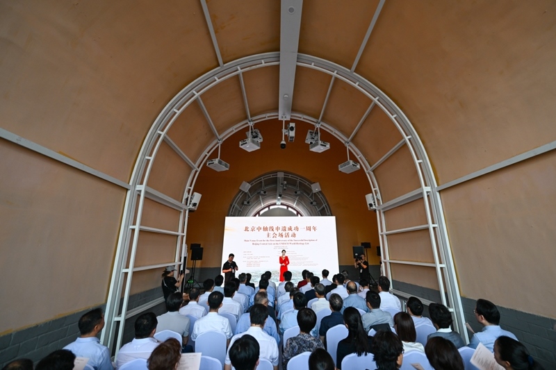 當日,“北京中軸線申遺成功一周年主會場活動”在北京鐘鼓樓廣場舉行。活動發(fā)布了《北京中軸線保護傳承三年行動計劃(2025年—2027年)》、《北京中軸線:中國理想都城秩序的杰作》叢書以及《世界文化遺產(chǎn)——北京中軸線》特種郵票等,展現(xiàn)申遺成功一年來,北京中軸線整體性和系統(tǒng)性保護、文化遺產(chǎn)傳承利用、國際交流合作等方面的一系列成果。