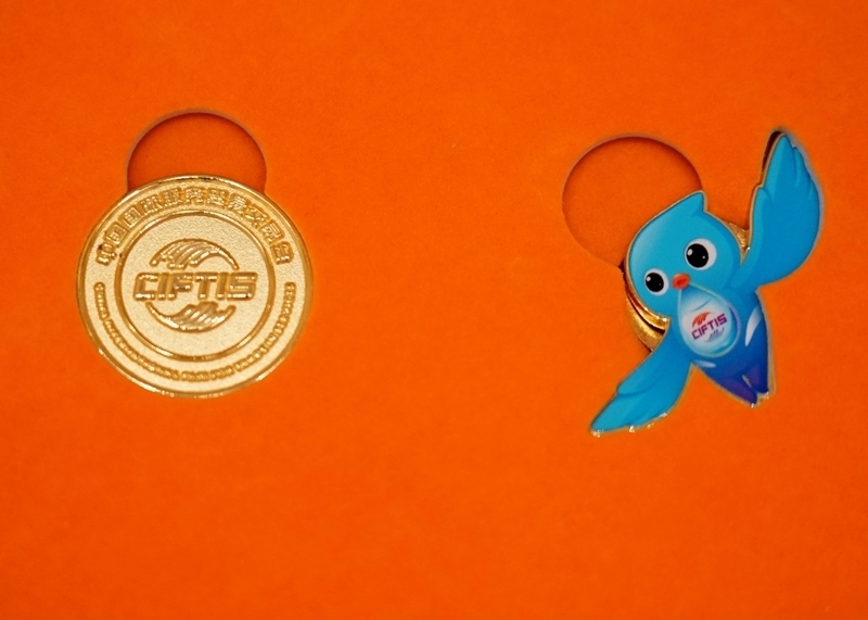 這是8月11日在2025年服貿會媒體吹風會現(xiàn)場拍攝的服貿會特許商品。