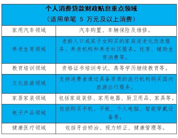 ●貼息范圍包括單筆5萬元以下消費,以及單筆5萬元及以上的家用汽車、養(yǎng)老生育、教育培訓、文化旅游、家居家裝、電子產(chǎn)品、健康醫(yī)療等重點領域消費。