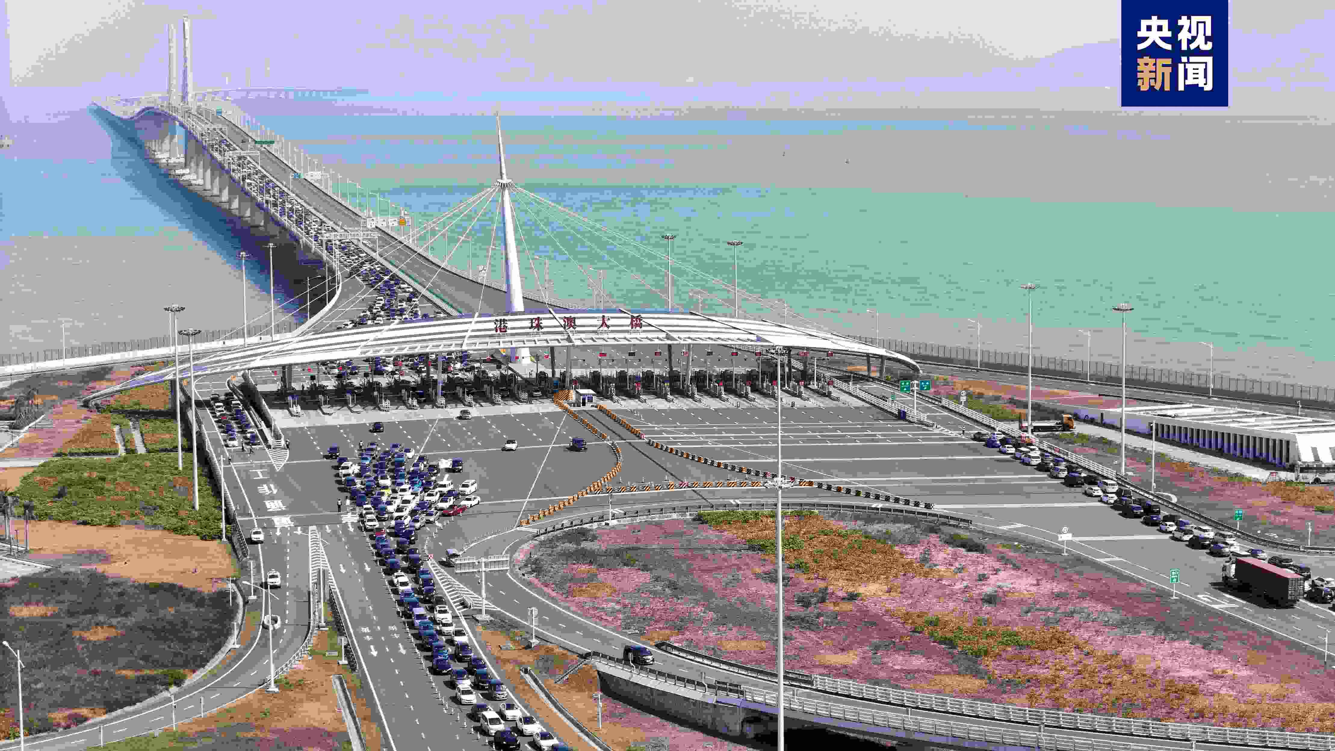 8月16日,出港的漁船駛過博賀灣大橋(無人機(jī)照片)。