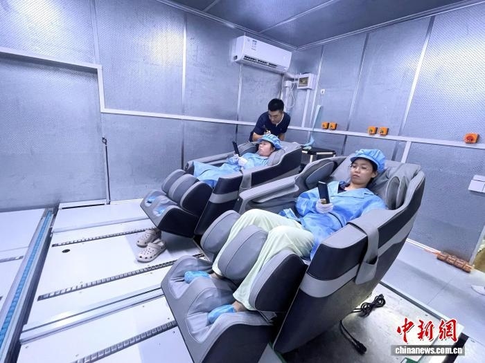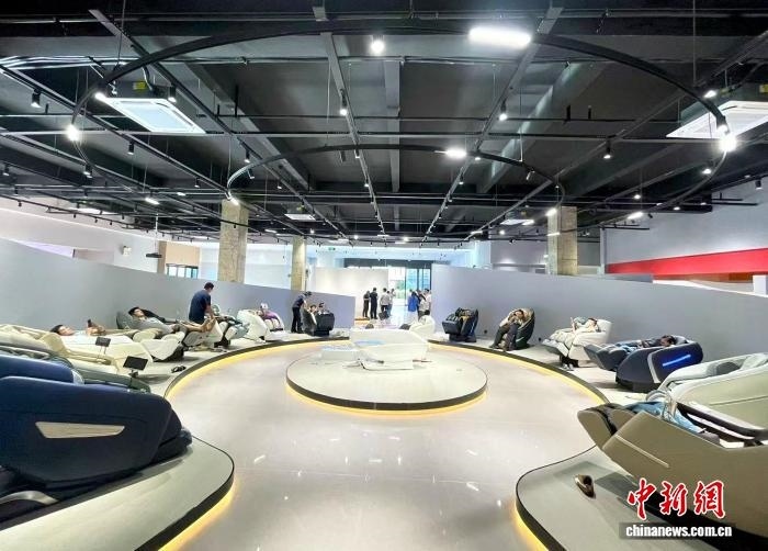 工作人員檢測按摩椅功能。中新網(wǎng)記者 葉茂 攝