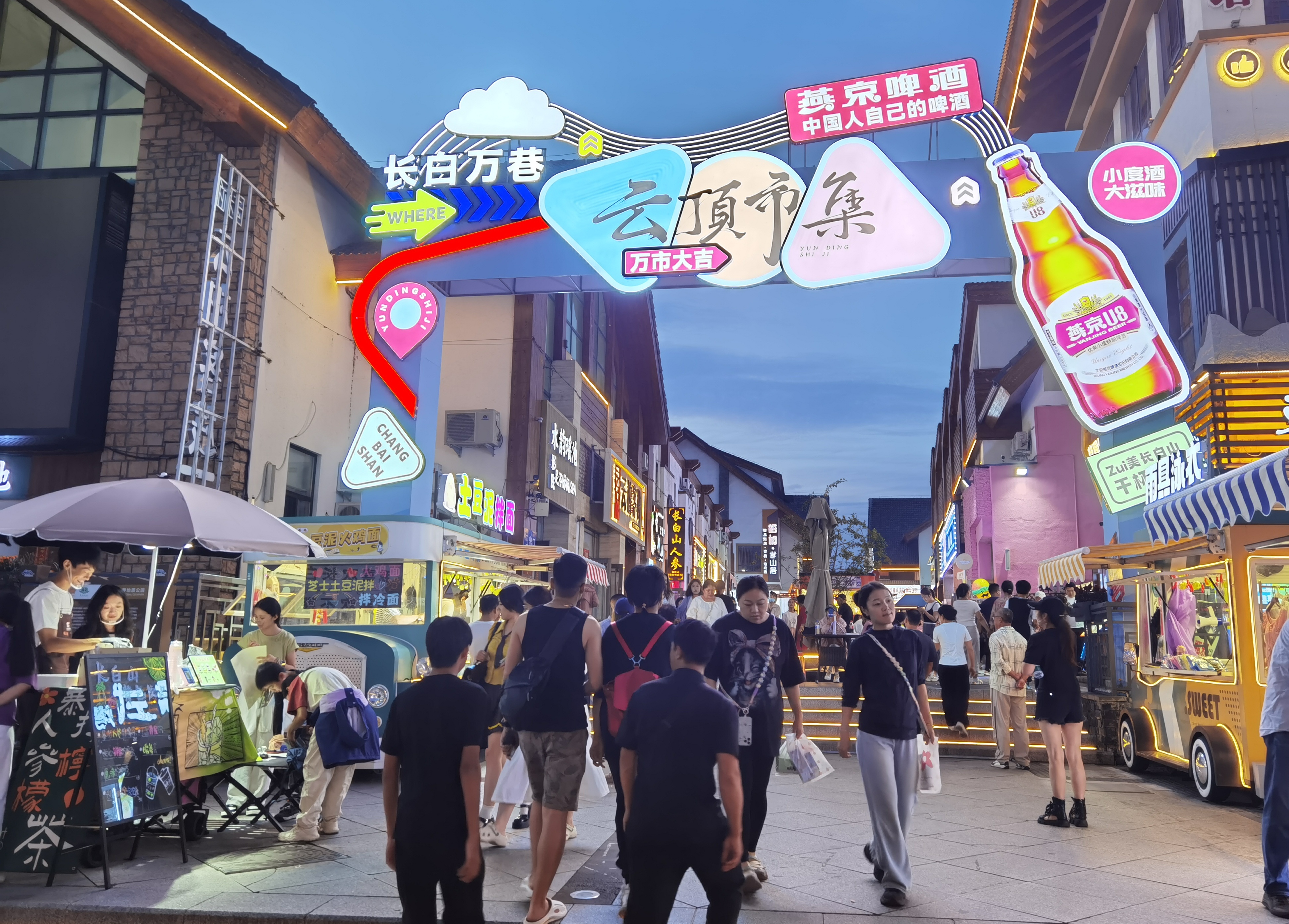 夜幕初降,云頂市集人潮涌動,樂隊(duì)彈唱與林間松風(fēng)交織;雪絨花音樂生活館里,燈光璀璨,民謠悠遠(yuǎn);美人松愛情森林里,漫步其間的情侶與家庭,寫下屬于他們的浪漫記憶。更令人驚艷的,是今夏盛大開街的恩都里(滿語enduri意為“神靈”)休閑度假商旅社區(qū)。