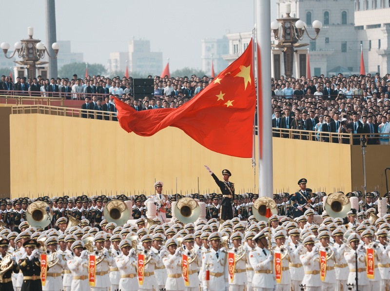 9月3日,紀(jì)念中國(guó)人民抗日戰(zhàn)爭(zhēng)暨世界反法西斯戰(zhàn)爭(zhēng)勝利80周年大會(huì)在北京隆重舉行。這是天安門廣場(chǎng)舉行隆重的升國(guó)旗儀式。