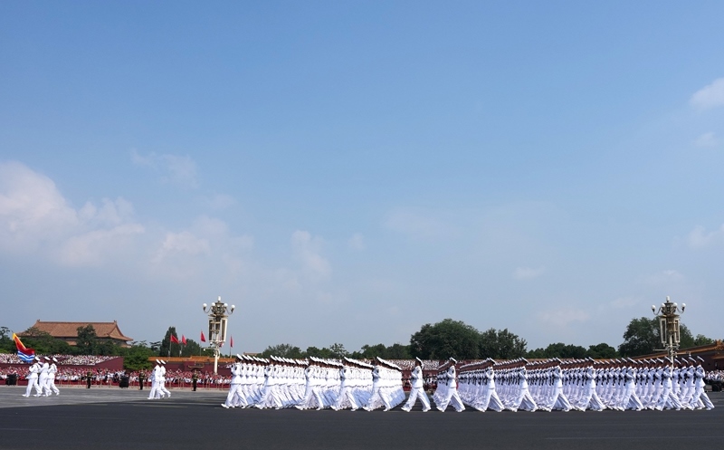 9月3日,紀(jì)念中國人民抗日戰(zhàn)爭暨世界反法西斯戰(zhàn)爭勝利80周年大會在北京隆重舉行。這是徒步方隊(duì)接受檢閱。