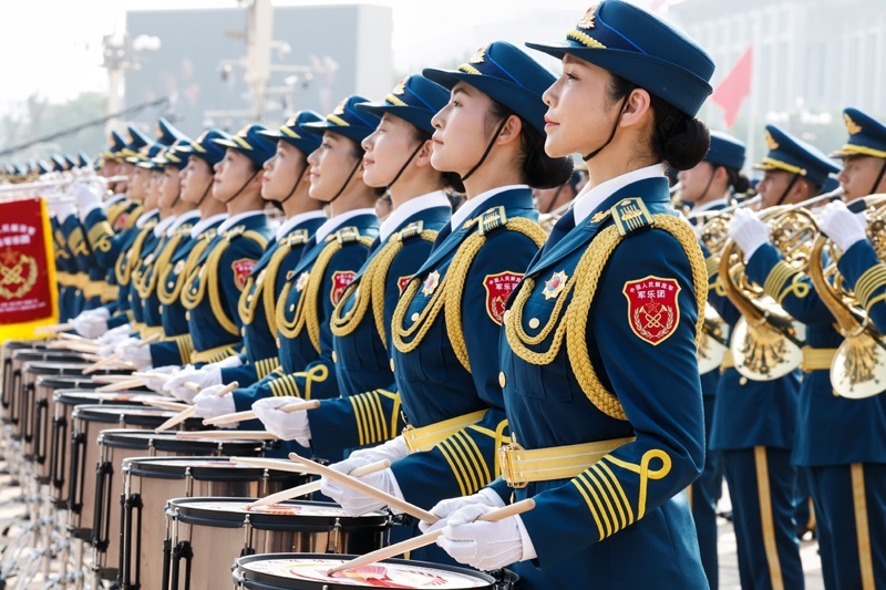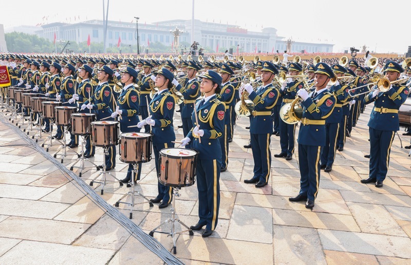 9月3日,紀(jì)念中國(guó)人民抗日戰(zhàn)爭(zhēng)暨世界反法西斯戰(zhàn)爭(zhēng)勝利80周年大會(huì)在北京天安門廣場(chǎng)隆重舉行。這是中國(guó)人民解放軍聯(lián)合軍樂(lè)團(tuán)在演奏。