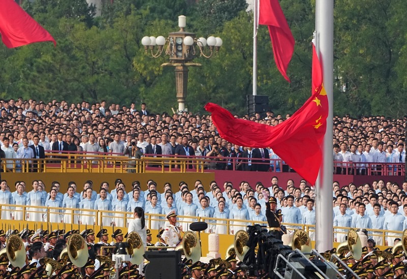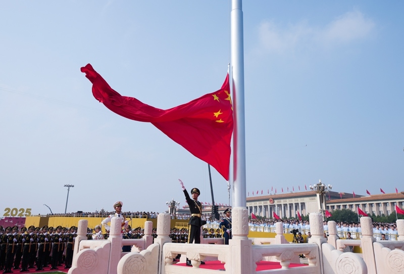 9月3日,紀(jì)念中國(guó)人民抗日戰(zhàn)爭(zhēng)暨世界反法西斯戰(zhàn)爭(zhēng)勝利80周年大會(huì)在北京隆重舉行。這是天安門廣場(chǎng)舉行隆重的升國(guó)旗儀式。