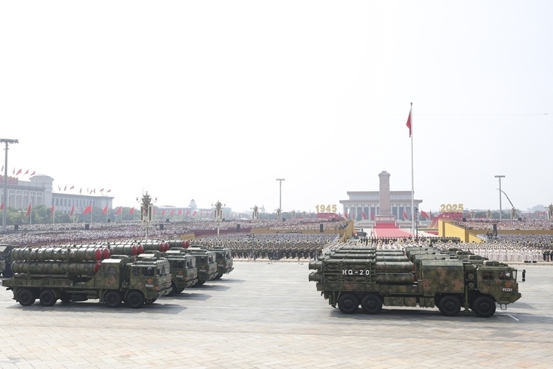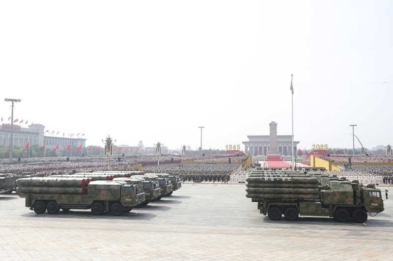 9月3日,紀(jì)念中國(guó)人民抗日戰(zhàn)爭(zhēng)暨世界反法西斯戰(zhàn)爭(zhēng)勝利80周年大會(huì)在北京隆重舉行。這是對(duì)空抗擊方隊(duì)接受檢閱。