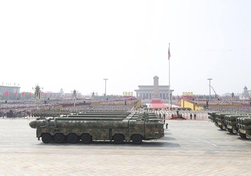 9月3日,紀(jì)念中國(guó)人民抗日戰(zhàn)爭(zhēng)暨世界反法西斯戰(zhàn)爭(zhēng)勝利80周年大會(huì)在北京隆重舉行。這是核導(dǎo)彈第二方隊(duì)接受檢閱。