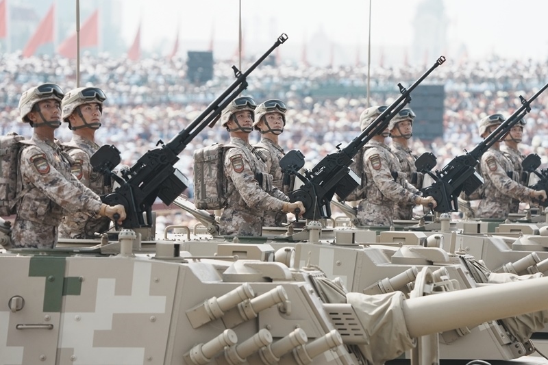 9月3日,紀(jì)念中國(guó)人民抗日戰(zhàn)爭(zhēng)暨世界反法西斯戰(zhàn)爭(zhēng)勝利80周年大會(huì)在北京隆重舉行。這是網(wǎng)絡(luò)空間作戰(zhàn)方隊(duì)接受檢閱。