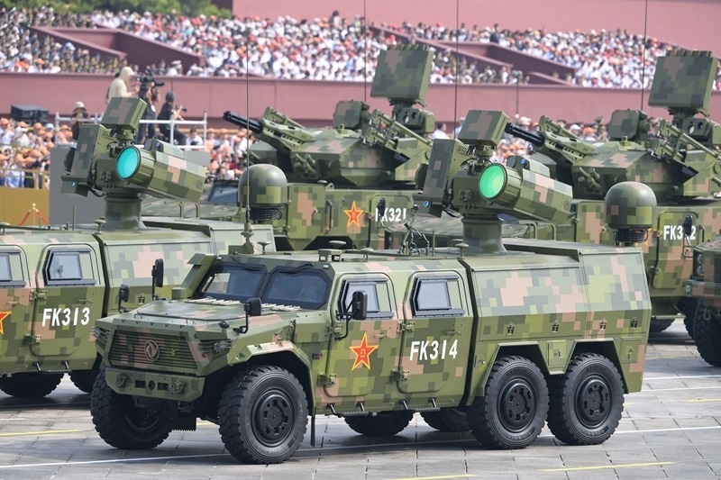 9月3日,紀(jì)念中國(guó)人民抗日戰(zhàn)爭(zhēng)暨世界反法西斯戰(zhàn)爭(zhēng)勝利80周年大會(huì)在北京隆重舉行。這是艦載防空武器方隊(duì)接受檢閱。