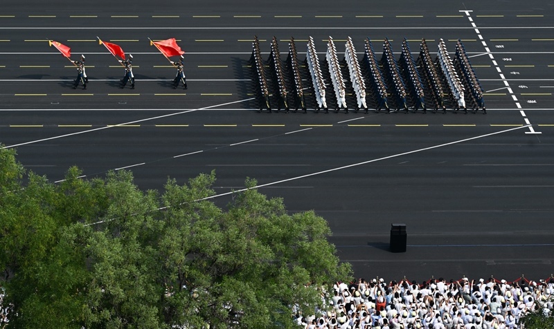 9月3日,紀念中國人民抗日戰(zhàn)爭暨世界反法西斯戰(zhàn)爭勝利80周年大會在北京隆重舉行。這是徒步方隊接受檢閱。