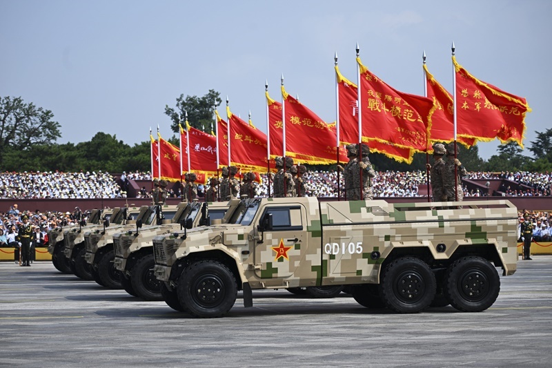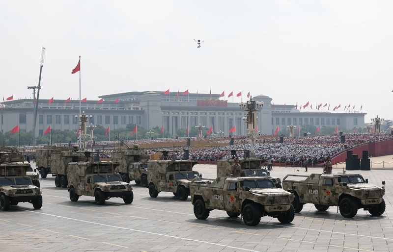 9月3日,紀念中國人民抗日戰(zhàn)爭暨世界反法西斯戰(zhàn)爭勝利80周年大會在北京隆重舉行。這是信息支援方隊通過天安門廣場。