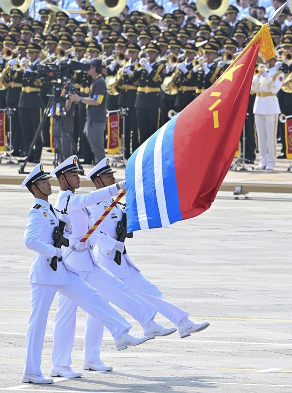 9月3日,紀念中國人民抗日戰(zhàn)爭暨世界反法西斯戰(zhàn)爭勝利80周年大會在北京隆重舉行。這是海軍方隊通過天安門廣場。