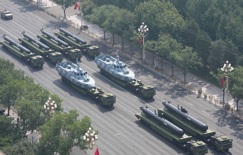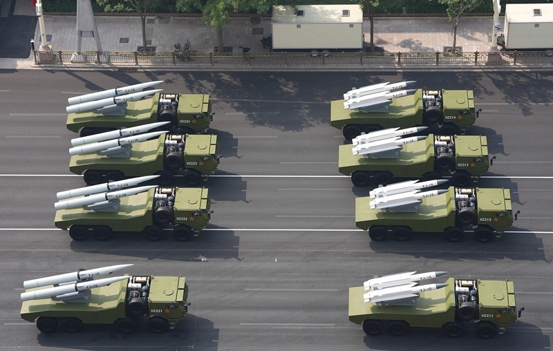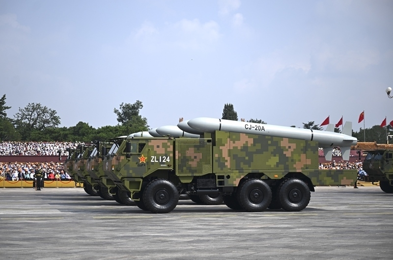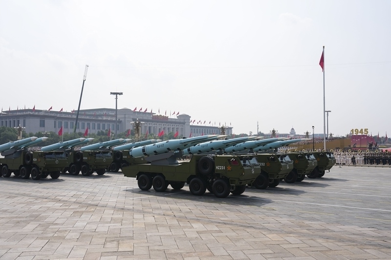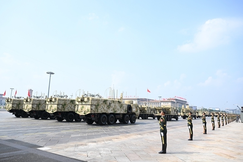 9月3日,紀(jì)念中國人民抗日戰(zhàn)爭(zhēng)暨世界反法西斯戰(zhàn)爭(zhēng)勝利80周年大會(huì)在北京隆重舉行。這是高超聲速導(dǎo)彈方隊(duì)接受檢閱。