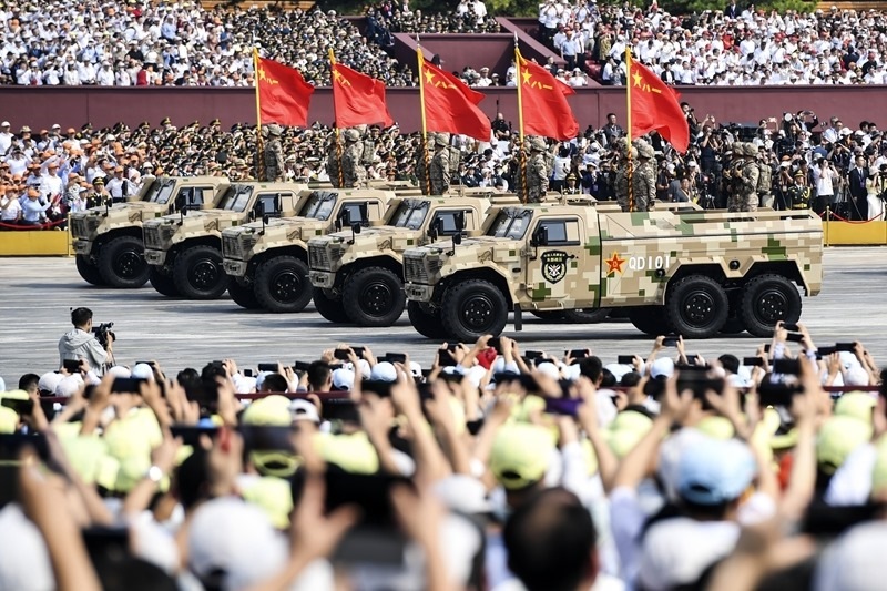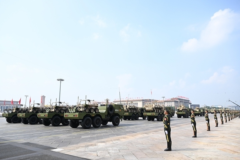 9月3日,紀(jì)念中國人民抗日戰(zhàn)爭(zhēng)暨世界反法西斯戰(zhàn)爭(zhēng)勝利80周年大會(huì)在北京隆重舉行。這是信息支援方隊(duì)接受檢閱。