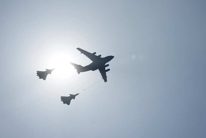 9月3日,紀(jì)念中國人民抗日戰(zhàn)爭(zhēng)暨世界反法西斯戰(zhàn)爭(zhēng)勝利80周年大會(huì)在北京隆重舉行。這是加受油機(jī)梯隊(duì)接受檢閱。