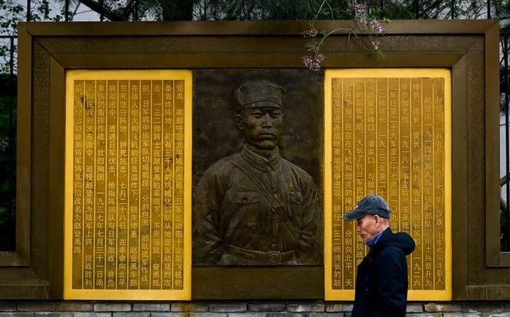 3月26日在北京市西城區(qū)趙登禹路,市民從趙登禹將軍英雄事跡主題浮雕前走過(guò)。新華社記者 劉金海 攝