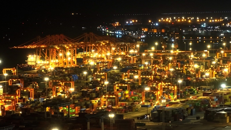 華燈初上時的欽州港(9月4日攝,無人機照片)。