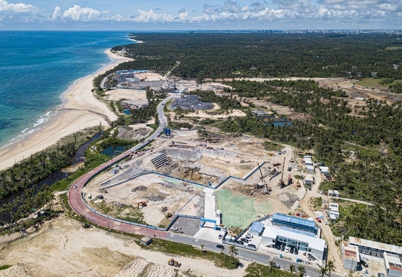 9月5日拍攝的建設(shè)中的海南商業(yè)航天發(fā)射場二期項目,遠處是海南商業(yè)航天發(fā)射場(一期)和文昌航天發(fā)射場(無人機照片)。