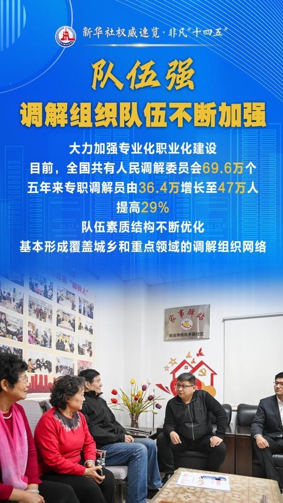“十四五”期間,司法部堅持和發(fā)展新時代“楓橋經(jīng)驗”,充分發(fā)揮調(diào)解職能作用,以“機(jī)制全、領(lǐng)域廣、隊伍強(qiáng)、效果實”十二字為工作“秘訣”,大力加強(qiáng)矛盾糾紛排查化解,切實保障群眾合法權(quán)益,維護(hù)社會和諧穩(wěn)定。