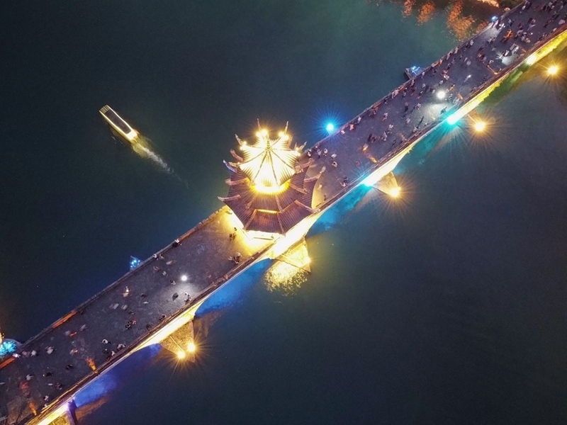 10月3日,游客在貴州省黔東南苗族侗族自治州鎮(zhèn)遠(yuǎn)縣古城游玩(無(wú)人機(jī)照片)。
