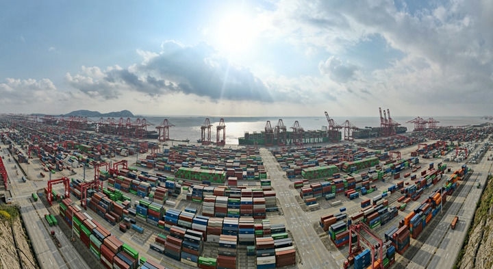 2024年12月18日拍攝的洋山港(無人機全景照片)。新華社記者 方喆 攝