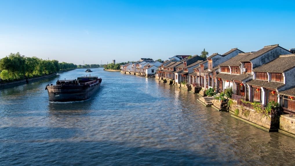 世界文化遺產(chǎn)大運(yùn)河流經(jīng)荻港村,造就了村中小橋流水的江南景致。這里的桑基魚塘系統(tǒng),被聯(lián)合國(guó)教科文組織譽(yù)為“良性循環(huán)典范”,構(gòu)建了桑魚共生的特色景觀。