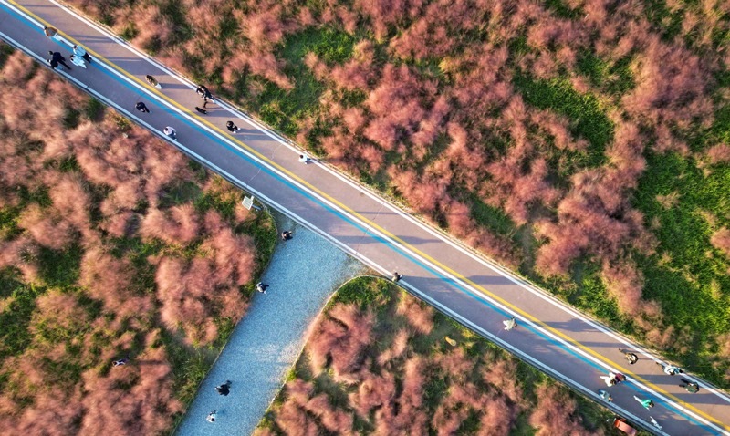 10月17日,游人在南京明孝陵景區(qū)石象路賞景游玩(無人機(jī)照片)。