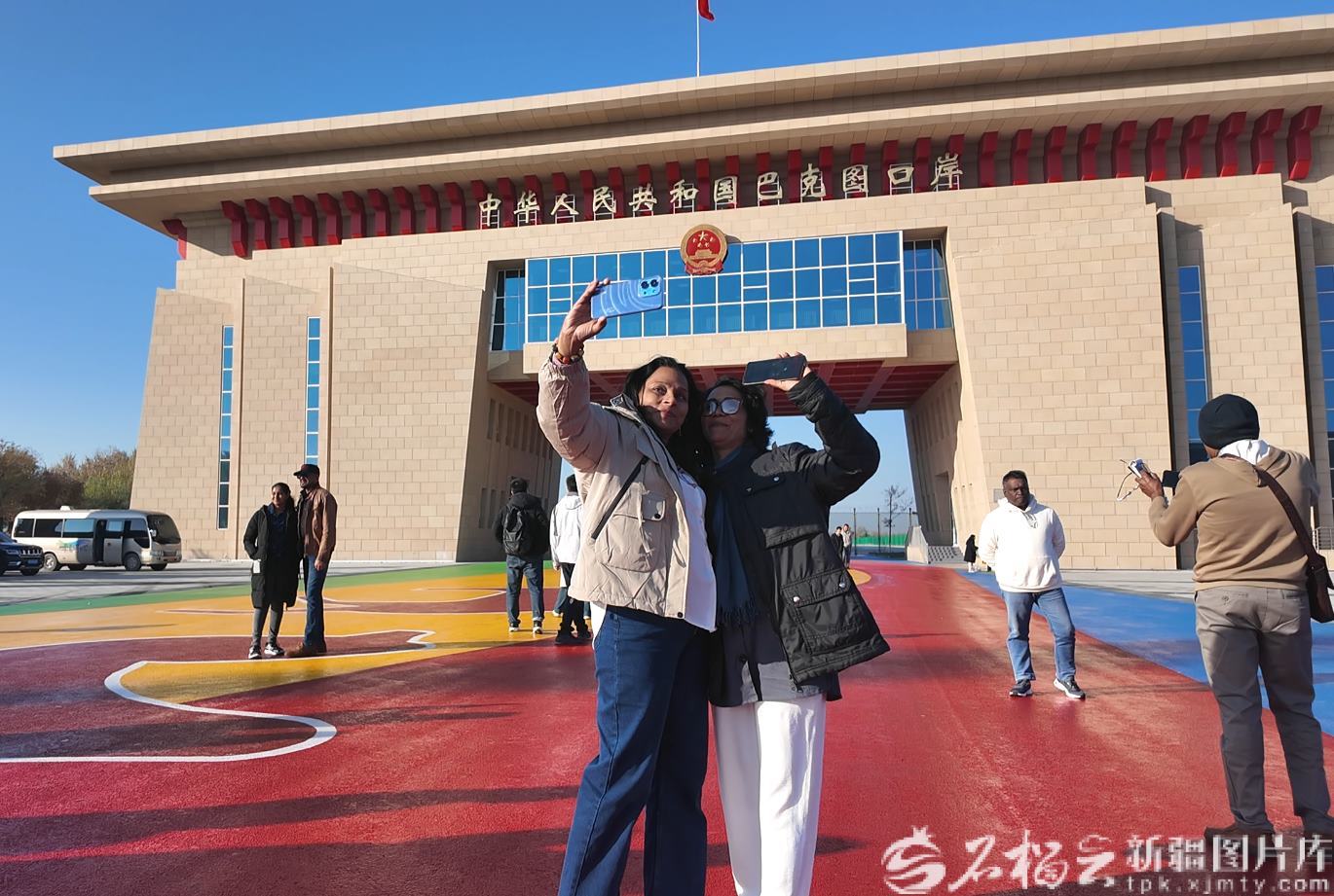 10月20日,斯里蘭卡人民解放陣線代表團成員在塔城地區(qū)巴克圖口岸拍照打卡。張成林?jǐn)z