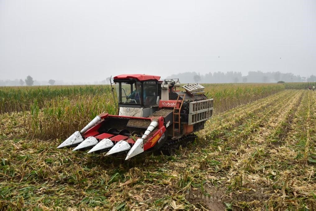 記者近日在山西運城市鹽湖區(qū)北相鎮(zhèn)西曲馬村田間看到,玉米已成熟,田埂邊積著淺淺的泥水,一臺履帶式收割機正穿梭其間。