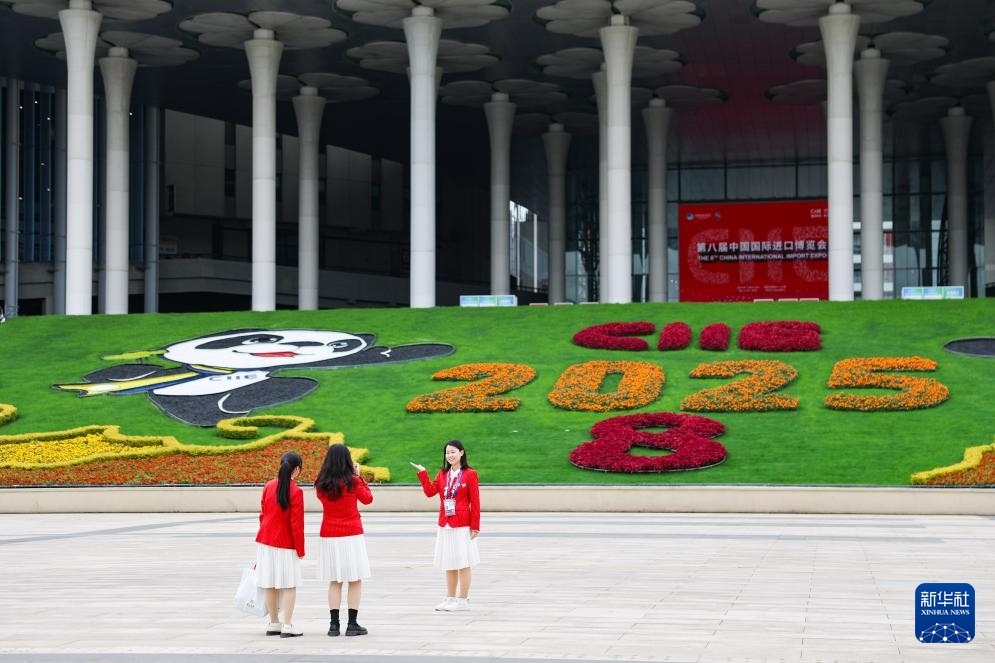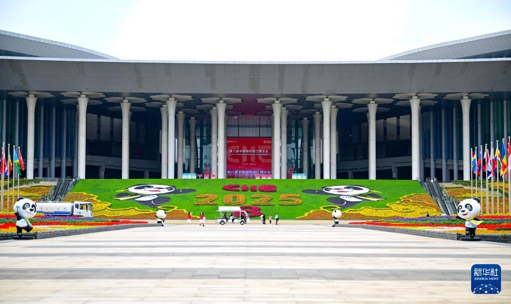 這是11月4日拍攝的第八屆進博會舉辦場地——國家會展中心(上海)的南廣場。