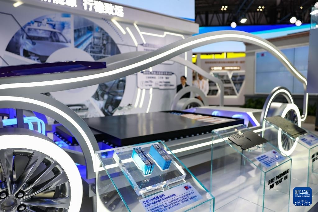 11月6日在進(jìn)博會(huì)技術(shù)裝備展區(qū)立邦展臺(tái)拍攝的“新能源動(dòng)力電池包涂裝解決方案”展示。這是該方案在中國(guó)首發(fā)。