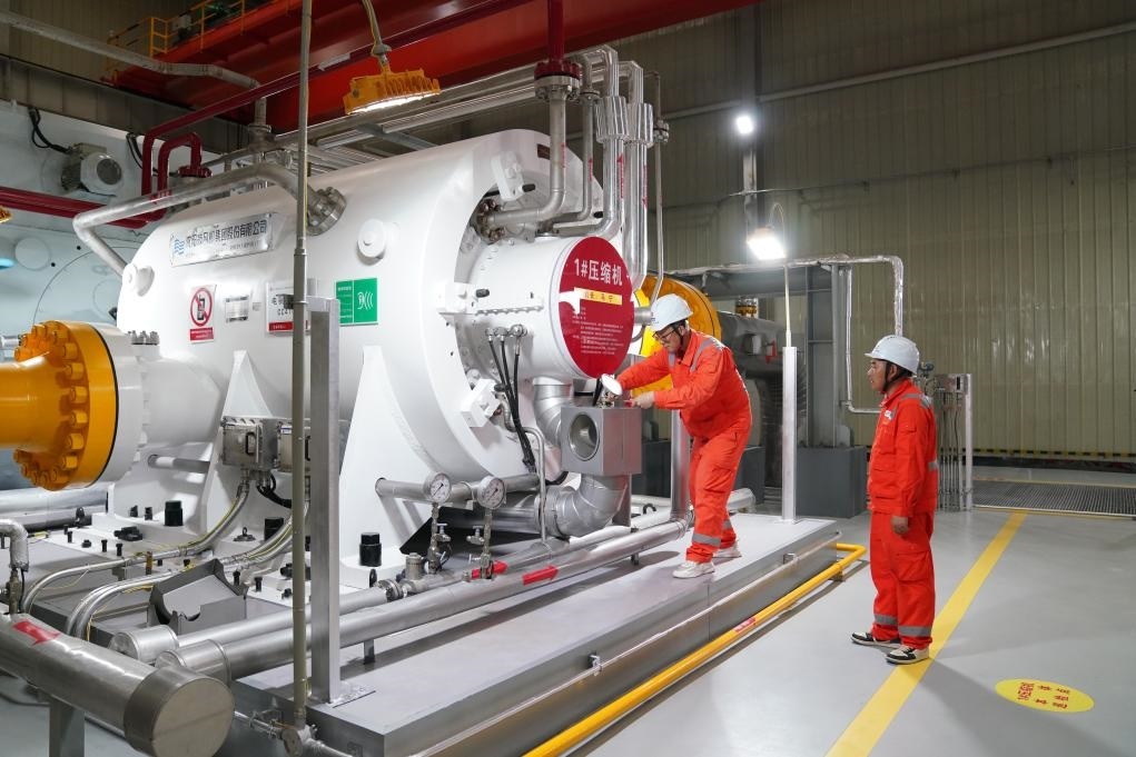 2025年7月9日,在“北氣南下”能源大通道黑河首站壓縮機(jī)房,綜合維修工人對壓縮機(jī)關(guān)鍵儀表進(jìn)行維修作業(yè)。新華社記者 王松 攝