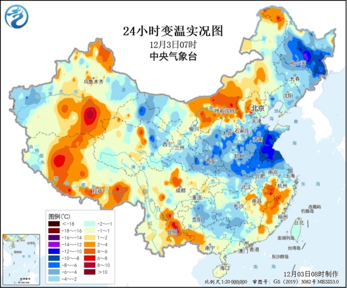 中國(guó)網(wǎng)12月3日訊 據(jù)中央氣象臺(tái)消息,隨著寒潮主體進(jìn)一步東移南下,過(guò)去一天我國(guó)中東部地區(qū)氣溫持續(xù)下跌。最新氣象監(jiān)測(cè)顯示,3日早晨,山東、河南、江蘇、安徽一帶氣溫下降幅度達(dá)到4~8℃,局地降幅超過(guò)10℃,最低氣溫0℃線位于蘇皖北部、河南南部至陜西南部等地。