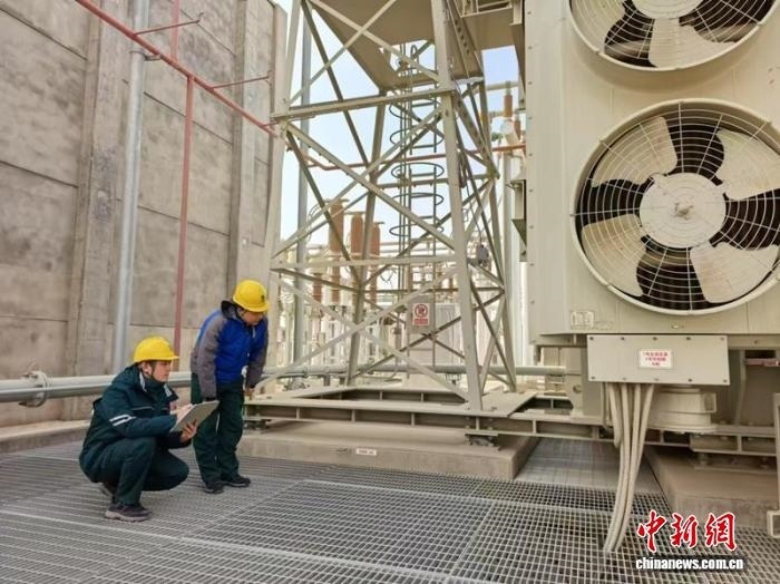 國網(wǎng)新疆超高壓分公司員工在750千伏喀什變電站開展地震后特巡。國網(wǎng)新疆電力有限公司供圖