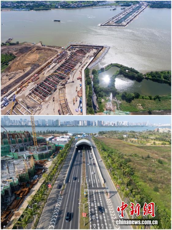 2025年12月18日,海南自由貿易港正式啟動全島封關。近年來,海南自貿港建設在利好政策帶動下不斷刷新“自貿港速度”,一個個重大項目、重點園區(qū)拔地而起,直觀呈現(xiàn)海南自貿港的蓬勃生機。這里正成為中國對外開放的新前沿、互利合作的新熱土和推動經濟全球化的新引擎。上資料圖為2019年6月19日的??谖拿鳀|越江隧道施工現(xiàn)場,下資料圖為2025年12月7日已建成通車的海南省首條跨越南渡江隧道——文明東隧道。(拼版圖,無人機照片)