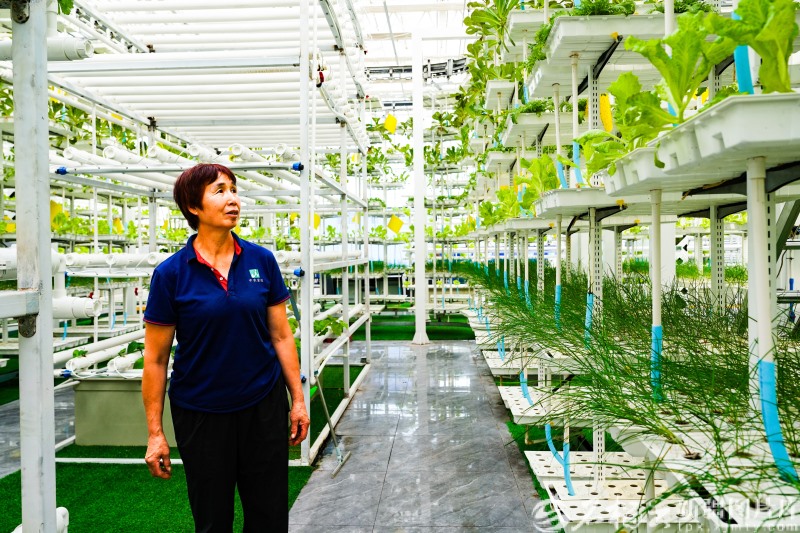 8月25日,工人在位于昌吉國(guó)家農(nóng)業(yè)高新技術(shù)產(chǎn)業(yè)示范區(qū)的新疆農(nóng)業(yè)博覽園未來(lái)農(nóng)業(yè)科技館垂直農(nóng)業(yè)展示區(qū)管理蔬菜。常誼誼攝