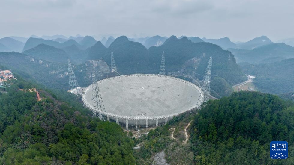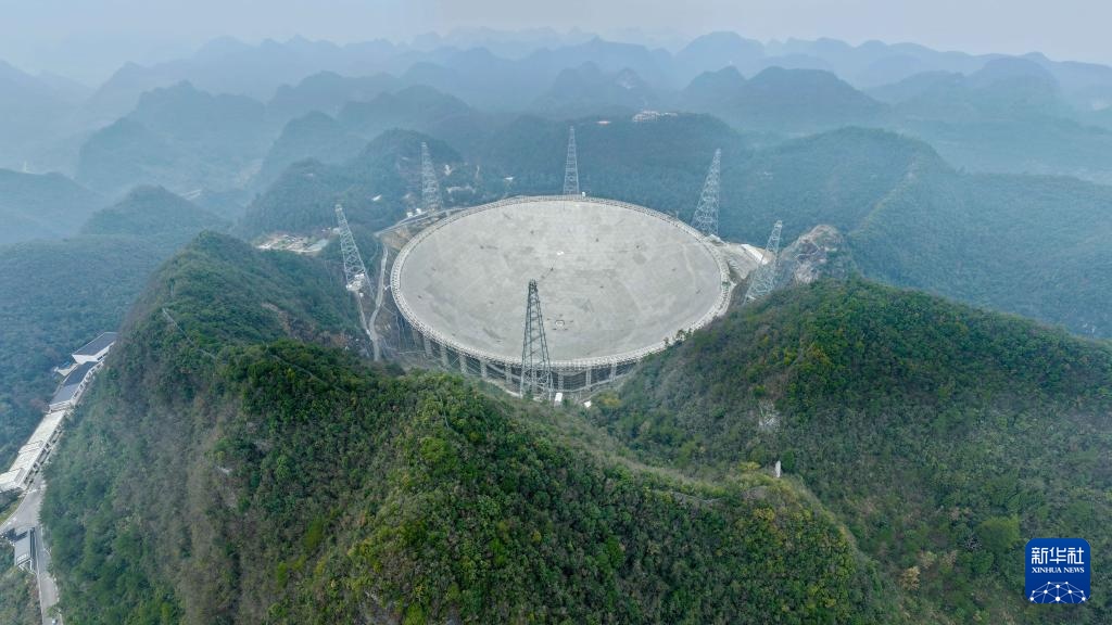 1月16日拍攝的“中國天眼”(無人機全景照片,維護(hù)保養(yǎng)期間拍攝)。